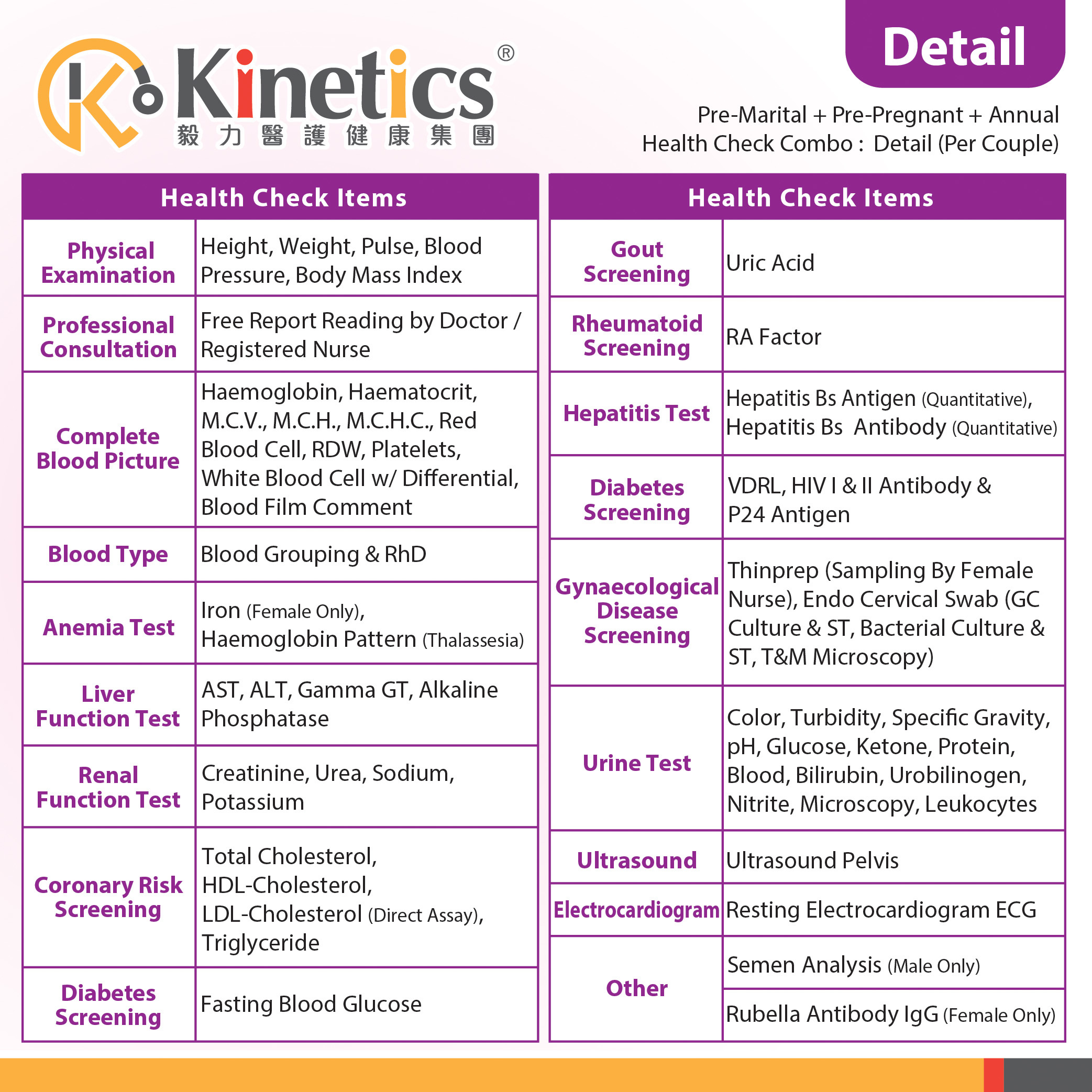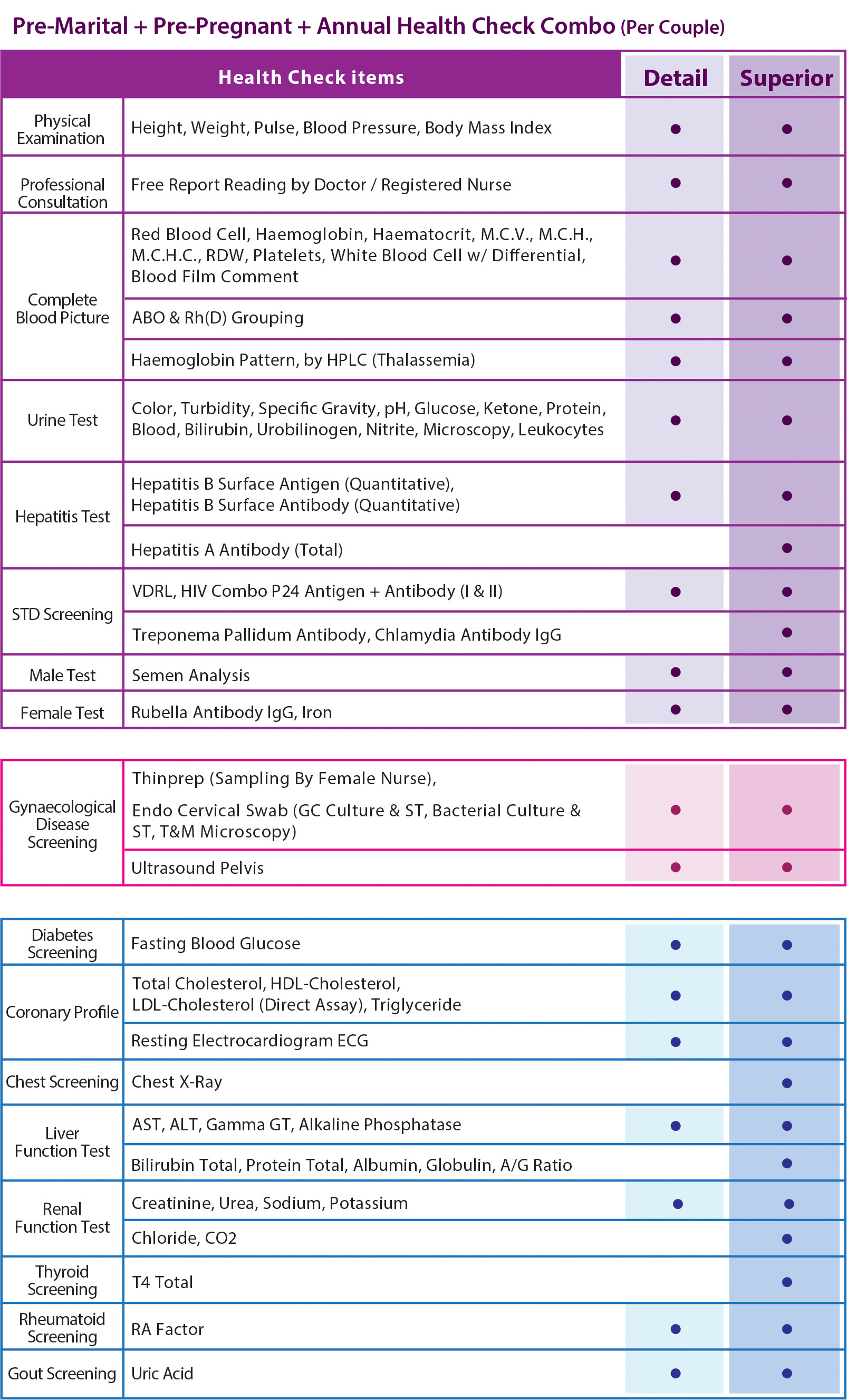 Pre-Marital + Pre-Pregnant + Annual Health Check Combo (Detail) (Per Couple)