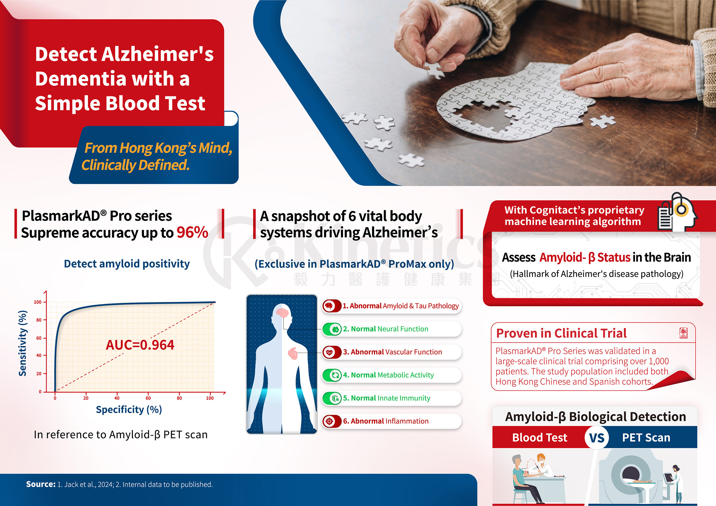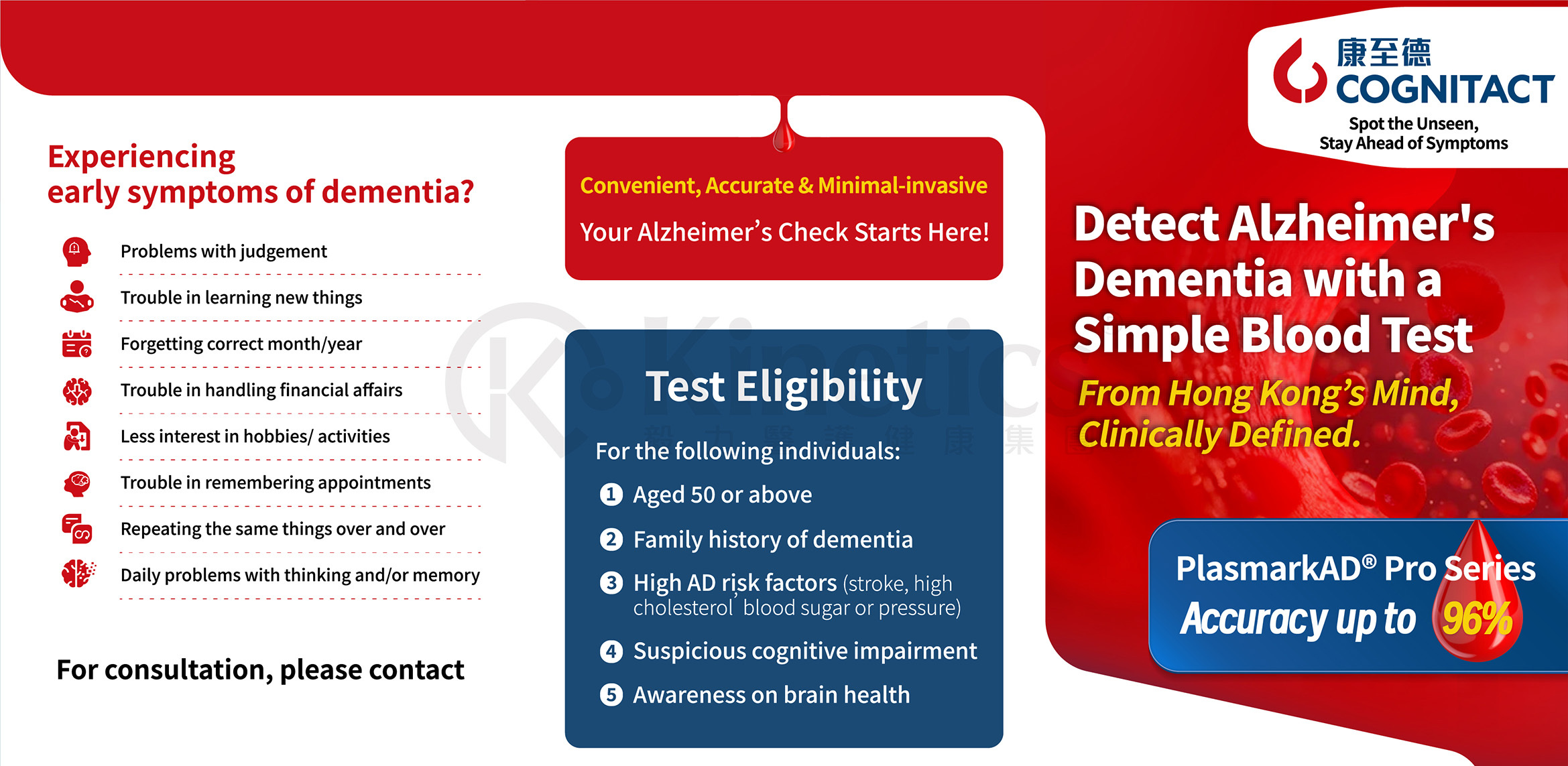 PlasmarkAD® is an innovative blood biomarker detection technique that accurately detects the genus protein in the brain to identify Alzheimer's risks when the disease is not yet apparent. The accuracy is up to96%.
