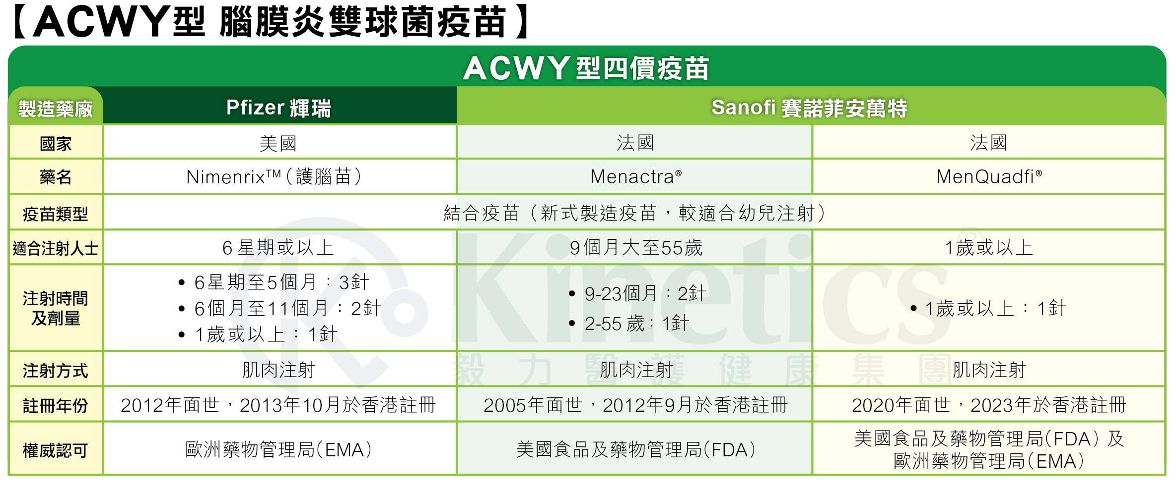 【Pfizer ACWY型腦膜炎雙球菌結合疫苗】1針 (適合6星期大或以上人士)