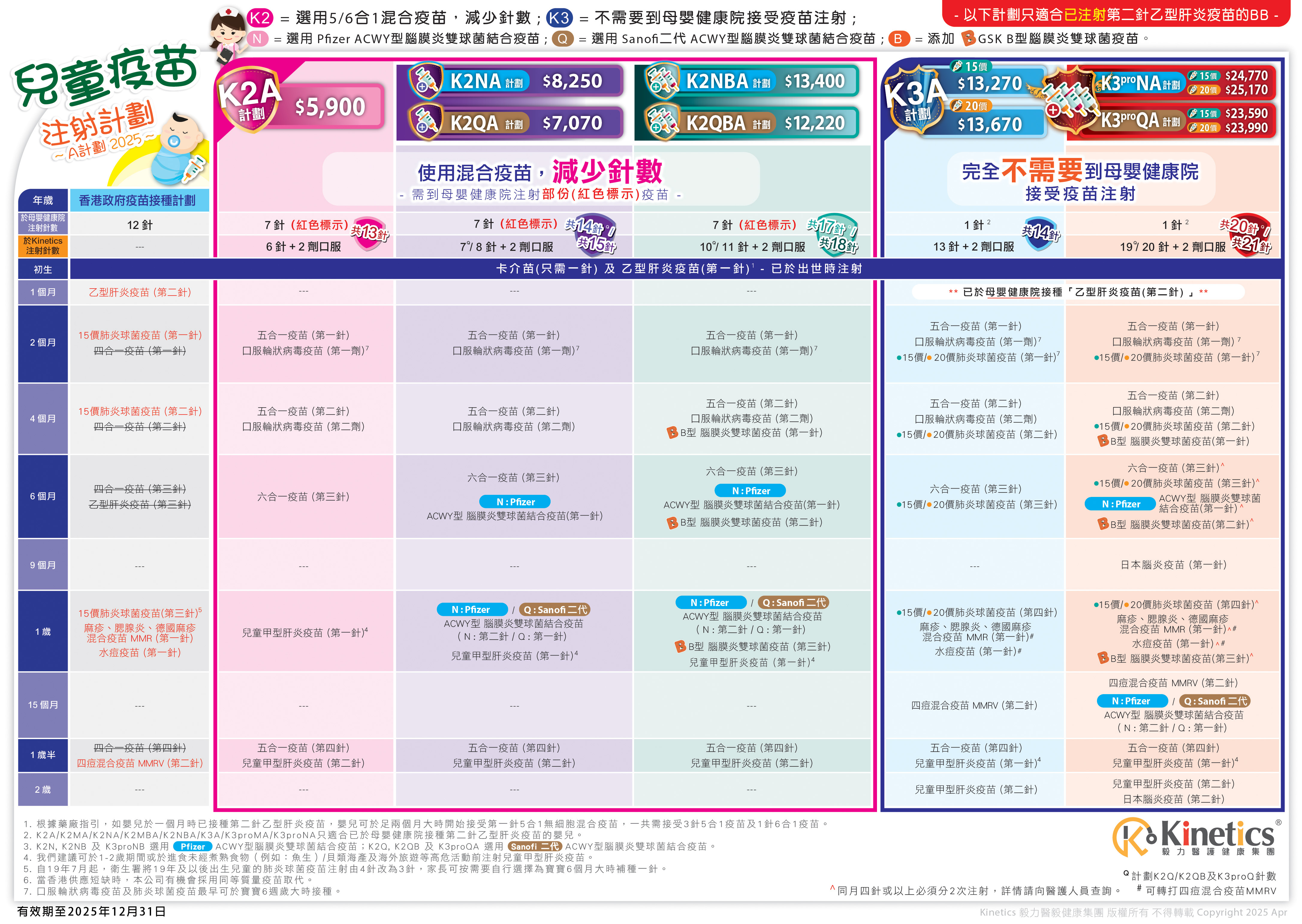 【兒童疫苗計劃 K2QA】 適合已注射第二針乙型肝炎疫苗之人士,但仍需到健康院接種部份(6針)疫苗