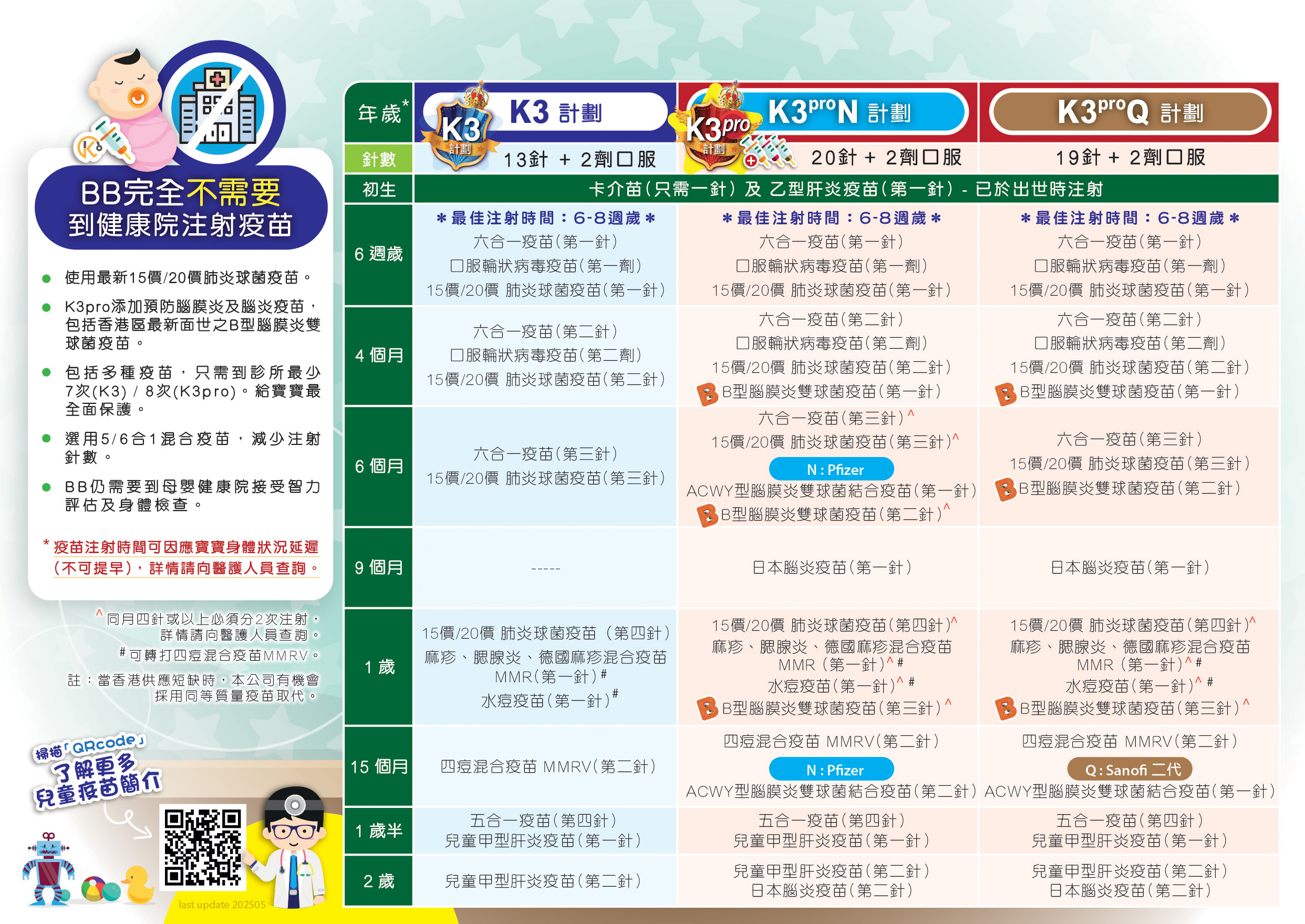 【兒童疫苗計劃 K3】 適合初生嬰兒注射,不需要到健康院接種所有疫苗