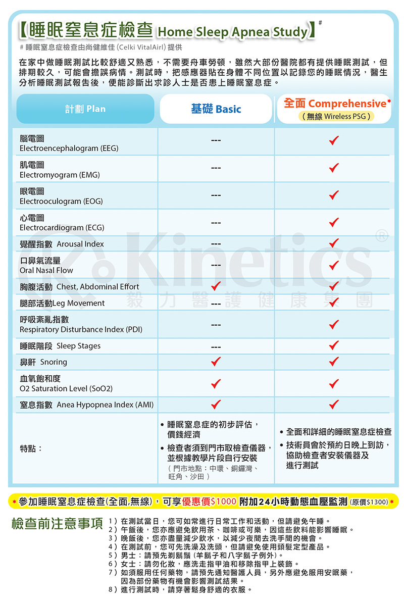 睡眠窒息症檢查 (全面) (測試由尚健維佳Celki提供)