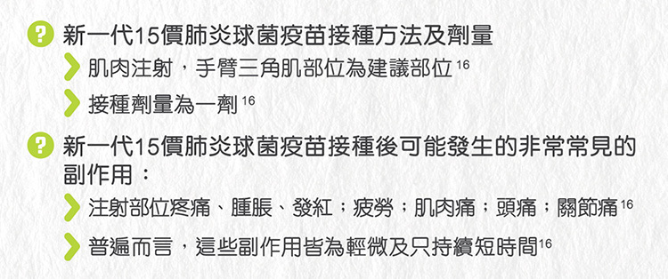 (1歲以上已完成整個13價肺炎球菌疫苗接種之兒童,可接種1針15價以添加更多保護。)