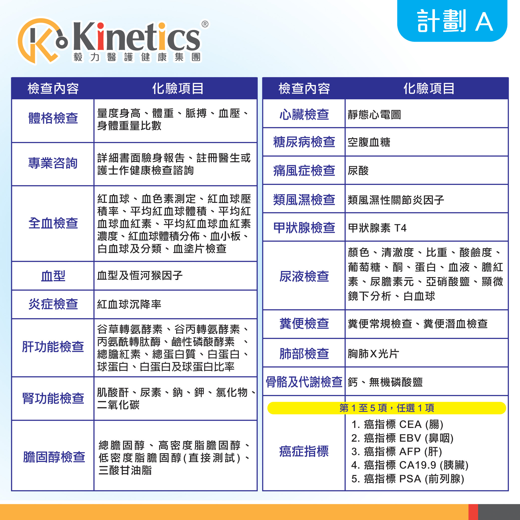 身體檢查計劃比較表