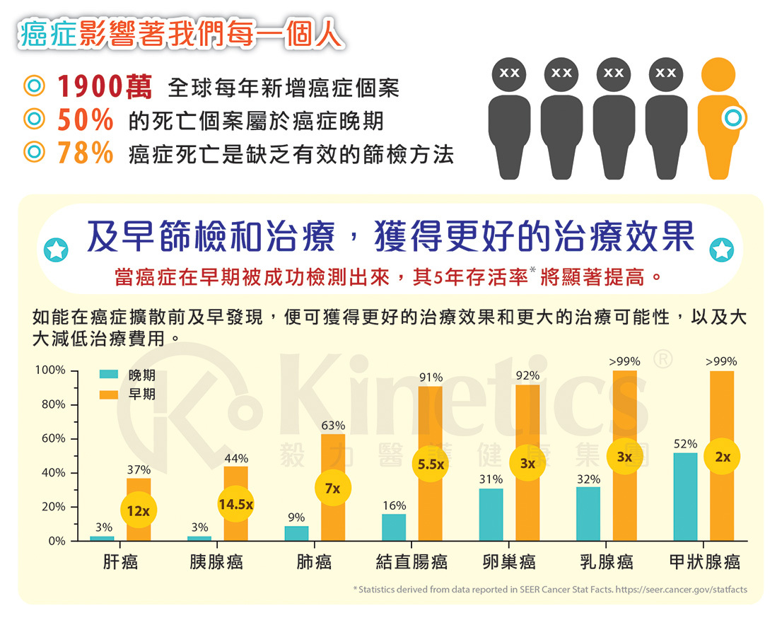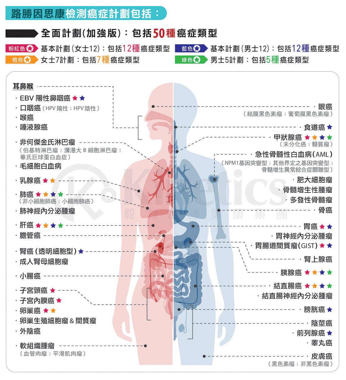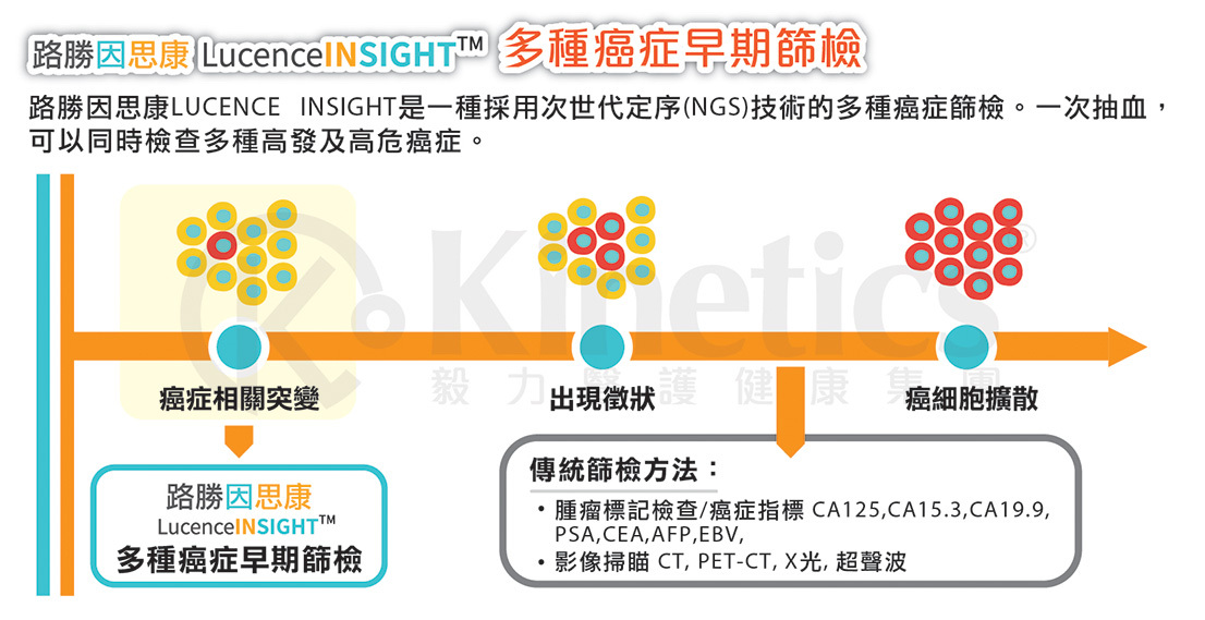 多種癌症早期篩檢項目清單: https://www.kinetics.hk/leaflet/insight-list.pdf