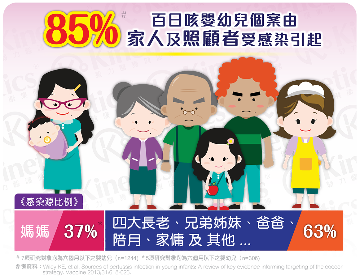 * 根據世衛估計,只有1%百日咳患者被診斷。成人百日咳患者容易被忽略 而變成傳播細菌的源頭